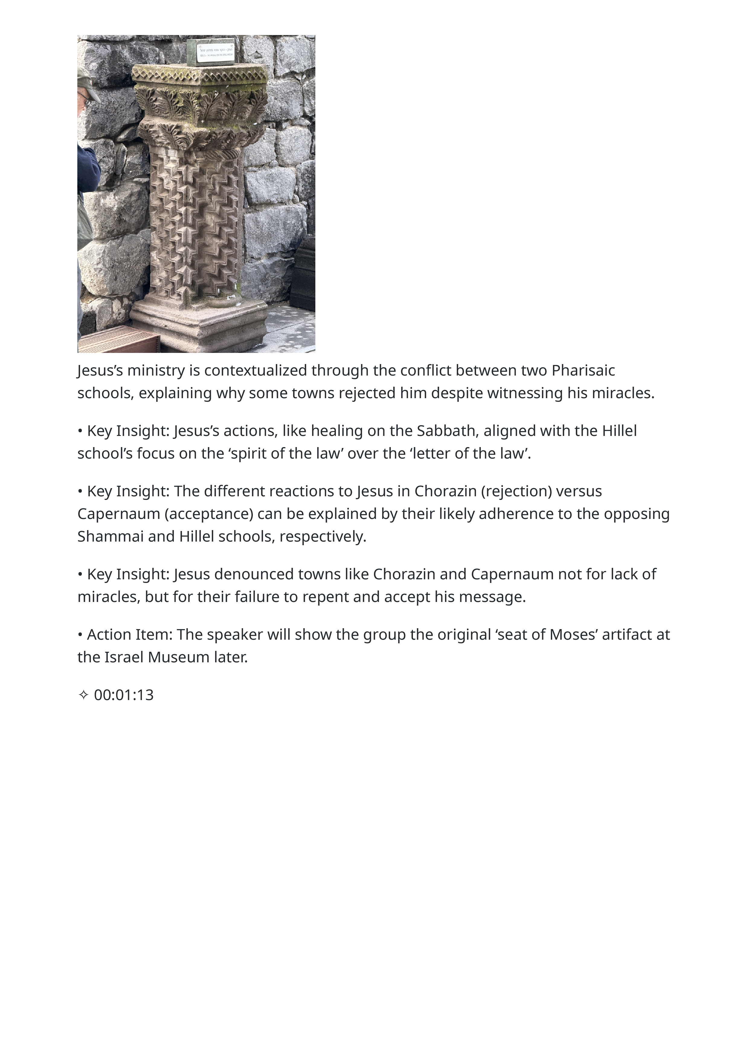 2026 02 26 lecture chorazin synagogue archaeology and hillel vs shammai in gospel sabbath narratives highlights