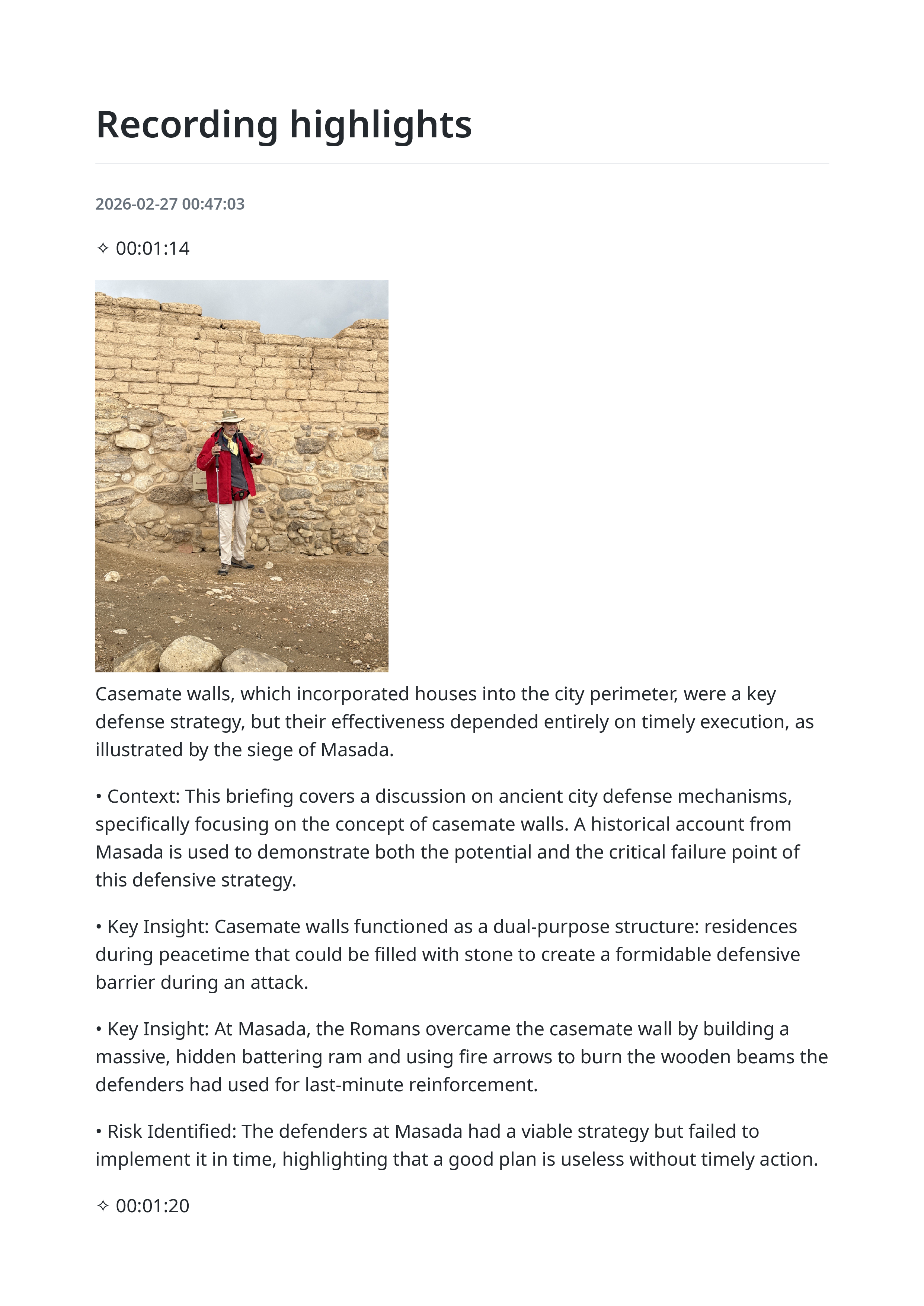 2026 02 27 lecture archaeological site tourcasement walls stratigraphy masada siege and water system navigation highlights